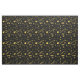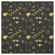 Retro black and yellow pattern of birds, dots, footsteps, flowers, hearts, butterflies.