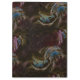 Atomic swirl, 50s space age, mid century modern retro pattern. Black with purple, blue, yellow colour swirls.