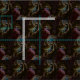 Atomic swirl, 50s space age, mid century modern retro pattern. Black with purple, blue, yellow colour swirls.