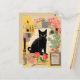 Retro Black Cat flowers Collage Postcard