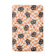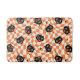 This vintage-inspired pattern features charming black cat faces with large, wide eyes and open mouths, giving them an expression of surprise or excitement. The cats are set against a vibrant, retro orange and cream chequered background with a wavy, distorted effect, evoking a sense of playful movement. Small black stars are scattered throughout the design, adding an extra element of whimsy and nostalgia. The combination of the classic Halloween colours and the bold, stylised cat faces creates a fun, slightly spooky aesthetic that harkens back to mid-century vintage design.