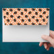This vintage-inspired pattern features charming black cat faces with large, wide eyes and open mouths, giving them an expression of surprise or excitement. The cats are set against a vibrant, retro orange and cream chequered background with a wavy, distorted effect, evoking a sense of playful movement. Small black stars are scattered throughout the design, adding an extra element of whimsy and nostalgia. The combination of the classic Halloween colours and the bold, stylised cat faces creates a fun, slightly spooky aesthetic that harkens back to mid-century vintage design.