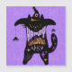 Retro Black Cat Witch Funny Halloween Magnet Card