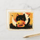 Retro Black Cat with Jack O' Lantern Holiday Postcard