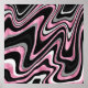 This stunning abstract black and rose gold marble swirl painting features a retro wavy line Groovy pattern with a modern twist. The piece of art is filled with faux rose gold foil, pink, black, grey, and white colours. The marbling wavy lines give it a psychedelic illusion aesthetic background. It's a trendy, creative, and vibrant fluid art piece that brings the 70s vibes to creative painting.