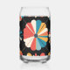 Retro Black Rainbow geometric Flowers Pattern Can Glass