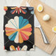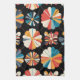 Retro Black Rainbow geometric Flowers Pattern Tea Towel