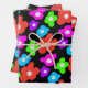 Retro Black Rainbow pride colour Flowers Pattern Wrapping Paper Sheet