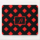 Retro Black & Red Diamond Pattern Monogram Mouse Pad