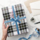 Retro Black White Christmas New Year Tartan Plaid Wrapping Paper