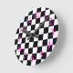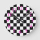 Retro Black/White/Hot Pink Chequerboard Pattern Round Clock
