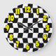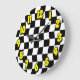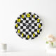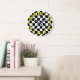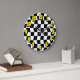 This cool wall clock features a black and white wavy chequerboard pattern. The numbers are in a groovy yellow font. You can change the colour of everything you see in the Edit screen. ••• For more retro homewares, visit my store Zazzle.com/JessicaAmberArtist ••• For custom orders, message me on Zazzle
