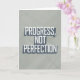 A cool, vintage-inspired card delivering a powerful message: "PROGRESS, NOT PERFECTION." The text features bold, stacked block lettering with a drop shadow effect, reminiscent of classic 8-bit or retro design styles. Set on a subtle gray-green background with minimal line details, this card is excellent for conveying a message of consistency and effort. It’s ideal for coaching clients, students facing exam pressure, gym buddies, or as a general motivational gift for anyone adopting a growth mindset. This design offers a fresh, stylish way to share an uplifting and practical message.