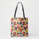 This stylish tote bag features a modern take on retro block patterns with a dynamic arrangement of red, yellow, and black squares on a neutral background. Perfect for fashion enthusiasts who appreciate vintage-inspired designs with a contemporary twist, this bag is both functional and trendy, ideal for everyday use or as a statement accessory.