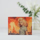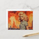 Retro blonde woman in a post apocalyptic world postcard