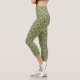 Retro Blue & Black Daisies on Green Floral Pattern Capri Leggings