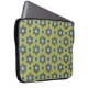 Retro Blue & Black Daisies on Green Floral Pattern Laptop Sleeve