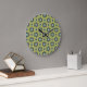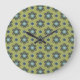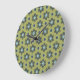 Retro Blue & Black Daisies on Green Floral Pattern Large Clock