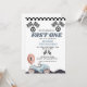 Retro Blue Fast one Boy 1st Birthday Car Boys Invitation