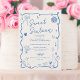 Retro blue French hand drawn illustrated Sweet 16 Invitation