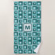 Retro Blue Geometric Squares Pattern Monogram Beach Towel