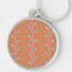 Retro Blue & Green Vines on Orange Floral Pattern Key Ring