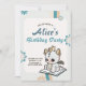 Retro Blue Grey Pastel Baby Dragon Birthday Invitation