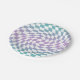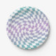 Retro Blue Lilac Checks Warped Chequerboard Paper Plate