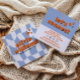 Retro Blue Orange Bold Groovy Checkered Trendy Fun Square Business Card