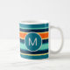 Retro Blue Orange Custom Colour Striped Monogram Coffee Mug
