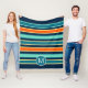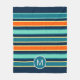 Retro Blue Orange Custom Colour Striped Monogram Fleece Blanket