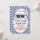 Retro Blue & Pink Checkered Santa Claus Christmas Invitation