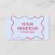 Retro Blue Red Hand Written Boho Unique Border Business Card