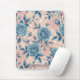 Retro Blue Rose Pattern on Soft Pink Background Mouse Pad