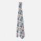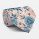 Retro Blue Rose Pattern on Soft Pink Background Tie