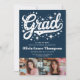Celebrate your graduate with this bold retro-inspired graduation party invitation! Featuring a dark navy blue background, a playful sparkly stars "Grad" script, and three personal photo slots, this design captures a fun and energetic vibe. The back continues the vintage aesthetic , a graduation cap graphic, and space for extra details. Perfect for graduates who love a nostalgic yet trendy look!