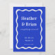 Retro Blue Wavy Squiggle Photo Wedding Save The Date