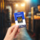 A simple blue and white column design. In the blue layer above lies your prestigious name job title. Below this is a photo option for photos 1,000 x 1,200 pix in size. This is followed by the employee number, contact details and a slogan caption "Need Help?" near the base. Change the slogan remarks to suit your service needs.