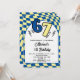 Retro Blue and Yellow Checkered “I Was 6, Now I’m 7” Boy Birthday Invitation – Wavy Checkerboard 7th Birthday Party Template – Trending 67 Meme Theme - 6 7 Party