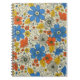 This notebook features a retro floral pattern that features flowers and leaves in shades of orange, blue and yellow.