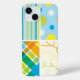 Retro Blue Yellow Plaid Pattern Dots Scribbles Case-Mate iPhone Case