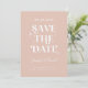 Retro save the date card featuring a blocky font that says "save the date" with mid century modern stars around. The background colour is blush pink. You can add a photo on the back.