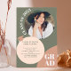 Circle up and celebrate! Our modern elegant boho invitations are the perfect way to announce your graduation in style Featuring a bold font with editable retro green, brown and blush and circle shapes, add 5 of your favourite photos. invite your guest to your open house and announce your graduation in style.