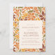 Celebrate a milestone in style with this retro-inspired graduation party invitation featuring a warm earthy colour palette. The intricate floral pattern in shades of orange, brown, mustard, and olive green creates a vintage aesthetic reminiscent of 70s design. A neutral-toned centre frame highlights the graduate's name and event details, blending classic and modern styles for a timeless invitation.