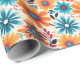 A fabulous boho flower wrapping paper. This colourful 70's vibe floral design features bright colourful flower power florals in orange and blue. A gorgeous retro gift wrap design that will stand out from the crowd.