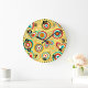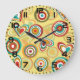 Retro Boho Hearts and Circles 70s Groovy Pattern Large Clock