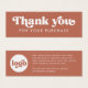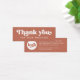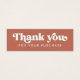 Thank you for your purchase mini insert card with the text "Thank you" in a retro style font. White (or custom colour) text on a terracotta brown background. Add your own logo on the back. You can change colours, move and resize elements with the design tool.