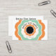 Boho 70's style retro orange, black and green flower circle business cards with retro flourished typography. A 60's and 70's style vibe. Add your name, company, and city. The back of the card is solid lilac.