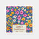 This is beautiful custom bridal shower napkin featuring retro boho flowers pattern in pink, orange, yellow and white with leaves over dark navy blue background. You can change the details using personalise button.