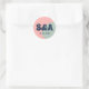 1970s vintage retro groovy waves personalised wedding monogram sticker in groovy bold typography and pastel colours including; pink and blue. This sticker is easily editable. If you need help with the customisation of this product or you need more matching products for this collection kindly message me via Zazzle.